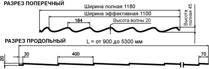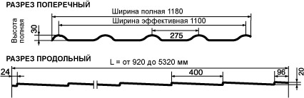 высота профиля - 35 мм вес 1 м2 - 4,7 кг длина листа min/max - 750/5331 мм |
